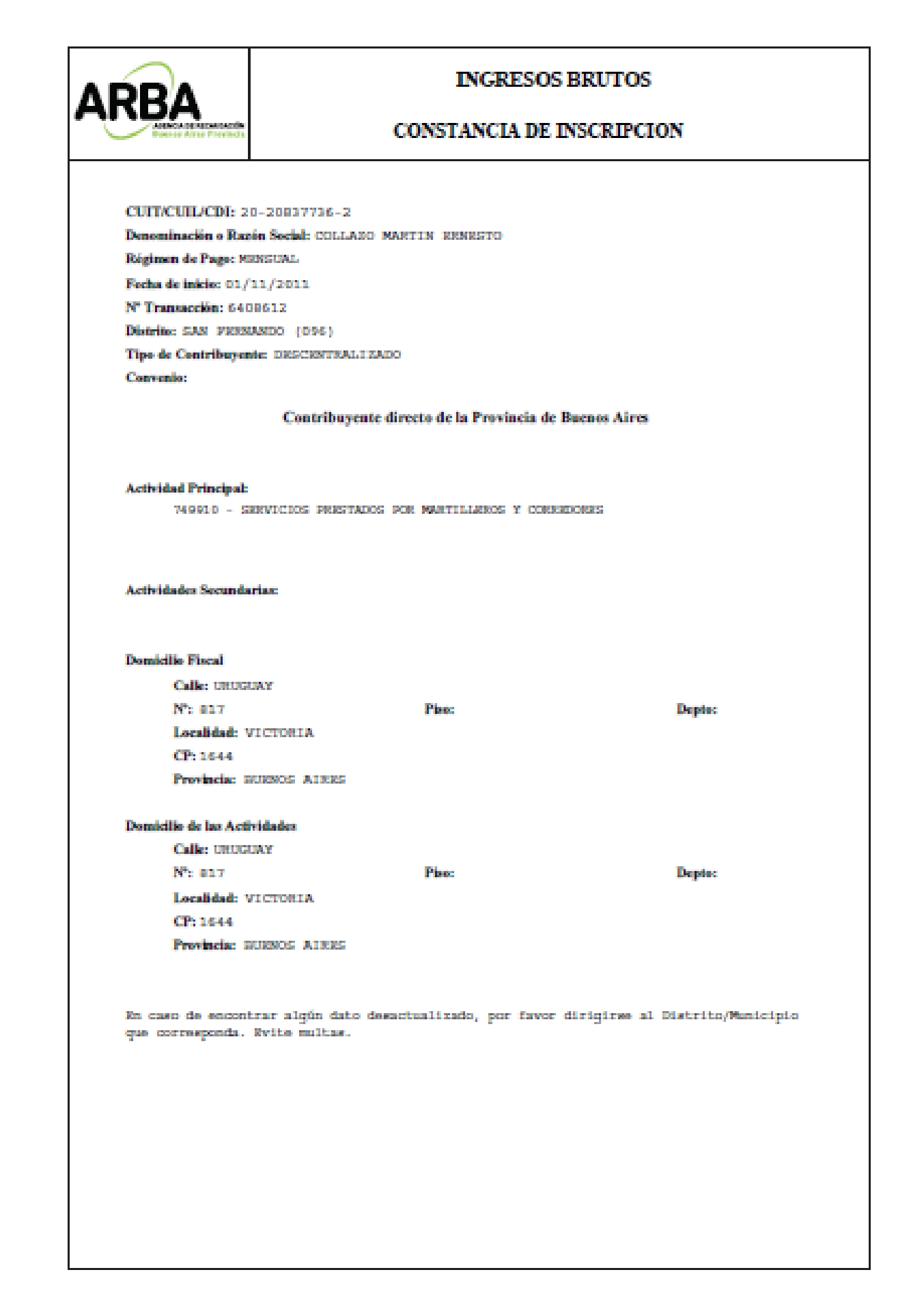 Administrador Martín E. Collazo (CUIT: 20-20837736-2) (CSI-5833).-